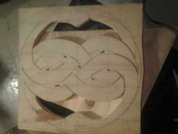 Ahora que tienes tu espacio de neg e inserciones definición/marcan uso el taladro para hacer agujeros piloto en las áreas de espacio negativo para permitir la inserción de una hoja de rompecabezas o pasar de una hoja de Sierra de cinta o anime. Que tenga que hacer dos agujeros al lado de uno al otro y luego les resma / en un agujero con el taladro para hacer que se conecte.