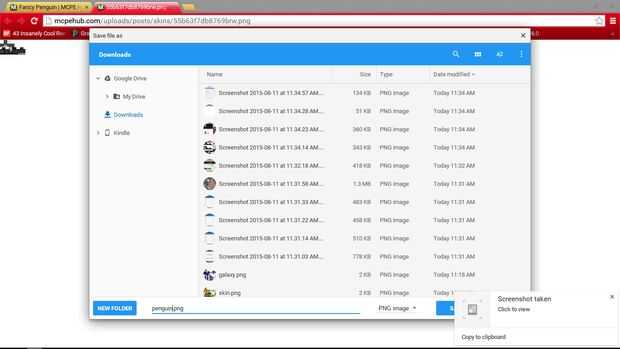 Esto le llevará a una página en blanco con su piel en la esquina superior izquierda. Pulse "Guardar como" yourname.png. (Cuadros 5. y 6.)