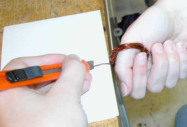 de los tramos rectos de alambre sobre una superficie plana. Usando una cuchilla de afeitar, tira solo la