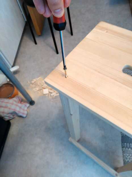 Ahora colocar la parte de "asiento" en las piernas con los 4 tornillos más largos y añada de fieltro.