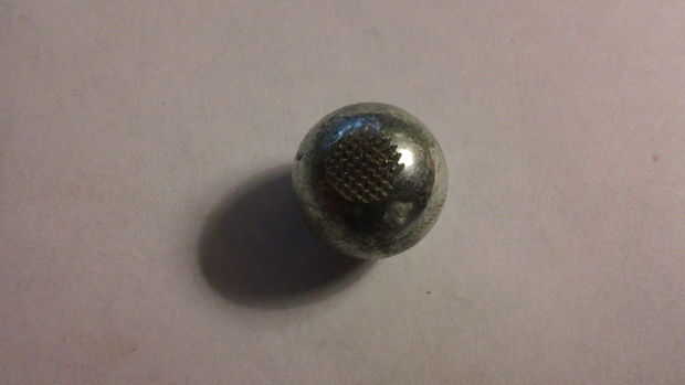 El lado plano de la bola en el mando-Asegúrese de que está directamente en el centro de la perilla del pegamento