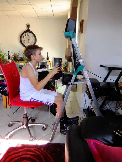 cuarto paso) Poner el Hi-Fi, alta fidelidad en el cubo pequeño donde se utilizaría normalmente para poner sus herramientas.