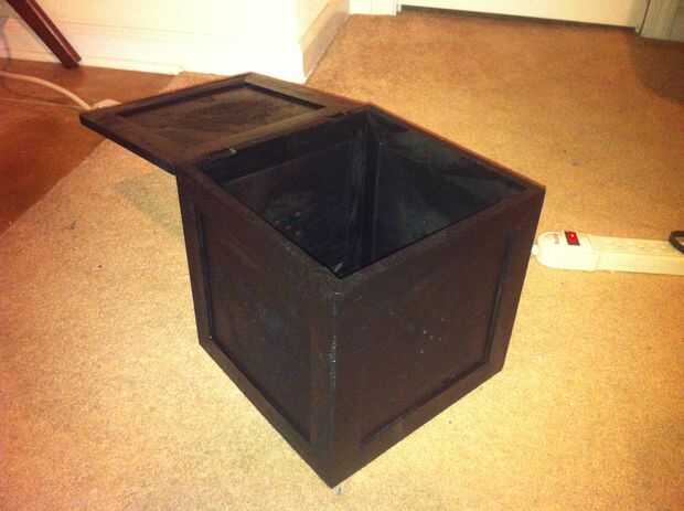 Asegurándose de que no hay ningún polvo en o en la caja, pintura en aerosol el interior y fuera de la caja, en varias capas a la izquierda si es necesario.