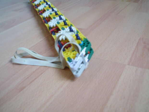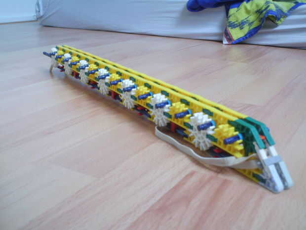 esta pistola es el mejor he construido. Tira unos 60-70 pies con bandas de goma de Postal. Tenía una caja aplanada y una pringles puede y tiro (con una barra gris que se afila por supuesto) a través de la lata de pringles y hubo cerca de 4 pulgadas a