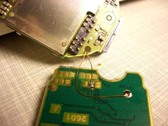 Mientras que el teléfono funciona con la energía del cable usb es un problema si poder obtiene hacia abajo. El teléfono no se enciende automáticamente cuando energía vuelve. Por lo tanto os adjunto unos pequeños alambres al botón de encendido. Estos cables se conectan a un conmutador analógico (CD4066) que es controlado vía el puerto paralelo de impresora del servidor.
