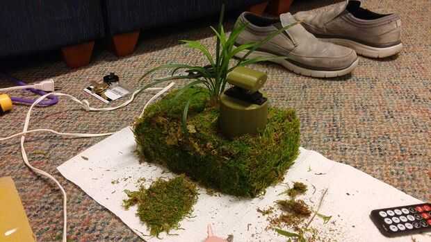 6. montar la base sobre la tapa de la caja de la torreta para que alineen los agujeros en cada uno. Usé pegamento para esto.