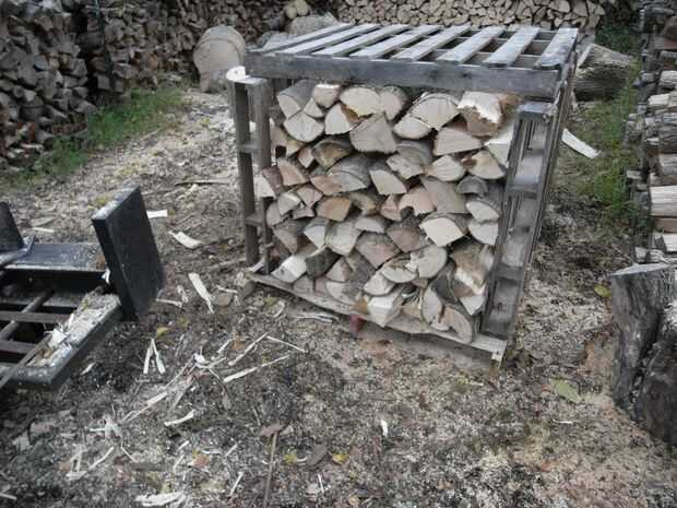 1-manejo leña es laborioso, lento y tedioso, no mencionar un dolor real y romper de nuevo. Pilotes de madera normales también no permitan madera a ser uniformemente «sazonada.» Condimento es esencial para asegurar que la madera se quema correctamente sin crear un peligroso creosota acumulación que puede causar un incendio de chimenea. (Esto es el "tiempo y trabajo" parte del sistema de ahorro).