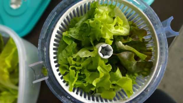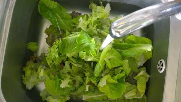 Lavar 3 veces, luego les dan una vuelta para eliminar el exceso de agua. Frío, estarán crujientes y no consigue lavar el aderezo para ensaladas.