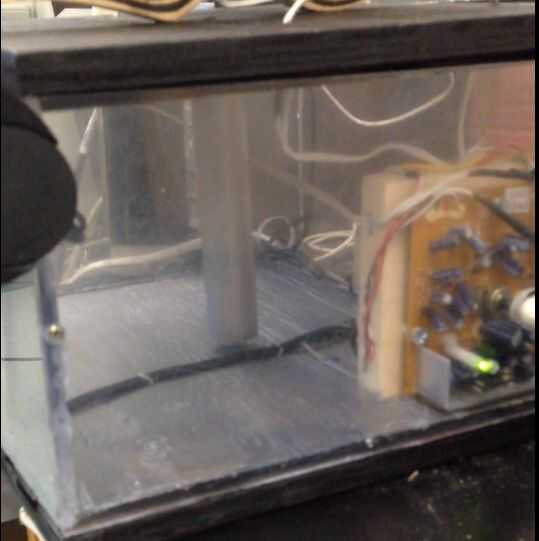 Una vez que la caja adapta perfecta necesita una espiga de madera de 1" por el poste central. Este post no sólo actúa como soporte sino también como la columna vertebral de la caja donde se atornilla la madera contrachapada a la creación de una presión perfecta para los laterales de plexiglás.