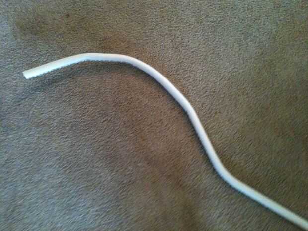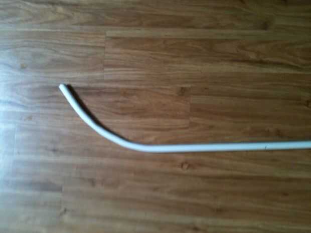 Corte el tubo a unos 5 pies con una sierra para metales. No creo que esto necesita alguna fotografía. La flexión es la parte más difícil de todo este proceso. Nuestro objetivo es un gancho como el de la imagen. Comience con poner un extremo en y doblarla poco a poco a un sinvergüenza como la forma como se muestra. Luego Vierta el agua sobre él hasta que pueda doblarlo y hacerlo. Jugar con la forma.