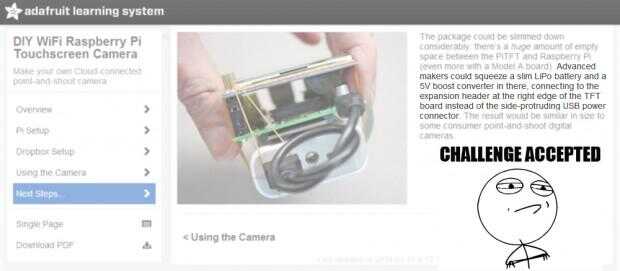 Adafruit lanzó su PiTFT no hace mucho tiempo y me compre uno inmediatamente de Pimoroni. Pronto después de eso Adafruit publicó un tutorial titulado Bricolaje cámara de pantalla táctil WiFi frambuesa Pi. Tuve una buena lectura a través de ella y en la última página que el párrafo final fue;