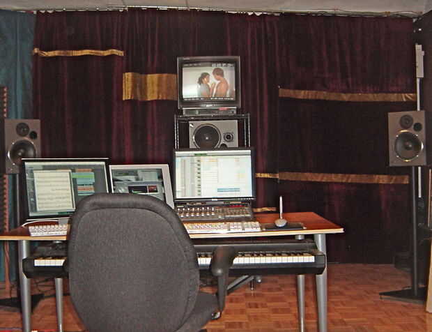Construí con materiales que tenía en mano: una hoja de plyboo sobraron de otro proyecto, algunas ruedas había halado de un pedazo de muebles desechados en la calle, un escritorio antiguo no necesitaba ya y cortinas de estudio mezcla viejo de mi marido (usted puede leer acerca de la construcción de su nuevo estudio aquí). Prácticamente el único gasto fue la espuma, que tuvo que ser cortado según especificaciones muy concretas.