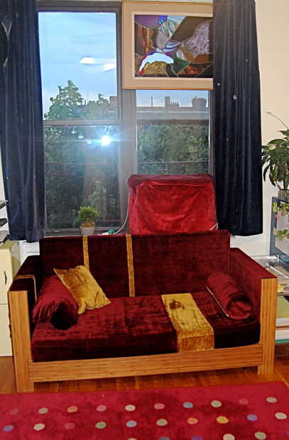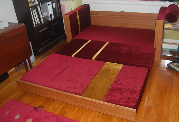 ¿por qué es imposible este sofá? Porque no se encuentra. Tuve 5'6 "del espacio disponible, pero quería un sofá cama donde pueden dormir a dos adultos. Por menos de $1000. También quería un atractivo pedazo de muebles, y quería que la cama sea cómoda. Me gustan a mis amigos. Los colchones fino papel y barras de acero encontradas mayoría sofás cama están diseñados para hacer nadie huir después de una noche dolorosa. Cómodo, barato, pequeño sofá cama que duerme dos simplemente no existe en el mercado, diseñado y había construido este. Es 64" ancho, 31" profundo, pero la cama es un tamaño estándar, cómodo para dos, y toda la cosa me costó cerca de $600.