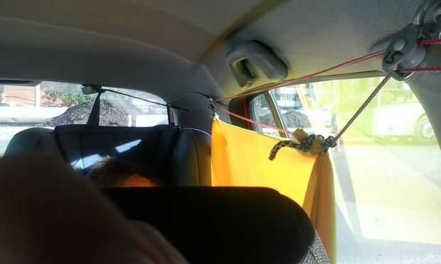 Niño puede abrir y cerrar y puede abrir y cerrar el controlador no se distrae de la carretera. Se entiende que la silla está situada detrás del conductor.
