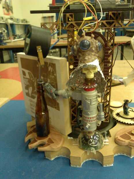 a). materiales: todas las piezas utiliza éter había hice que quedaron de otros proyectos o personas caminando por mi banco de trabajo son tan fascinados en cuanto a lo que estoy creando a dejar y donar piezas. Hay un montón de 'play' en este tipo de arte y sólo quieren tocar y jugar con él. Bastante es increible todas las historias de infancia que se comparten cuando reconocen un juguete familiar tenían como un niño.