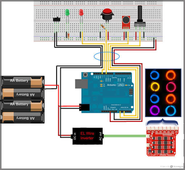 Usted puede haber notado el cable negro y amarillo, enrollado en el cable de ethernet. Porque utilicé dos cables para la principal potencia positiva y 2 cables para la principal potencia negativa, me quedo sin cable y cables extras dos envueltos alrededor. Usé 4 cables para energía principal como no tuve ninguna pista si un cable sería suficiente para alimentar todo el sistema - para su, yo quería ser como la conciencia de la energía como sea posible.