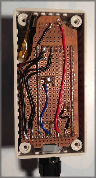 -Cortar un trozo de placa de circuito de prototipos a tamaño adecuado para caber en la carcasa (esperemos que mejor que mi intento).