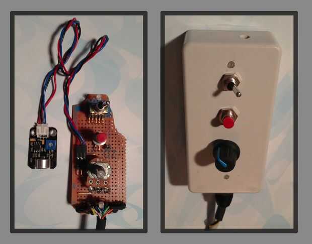 -Perfore un pequeño agujero en la parte superior de la carcasa de control remoto para el Sensor de sonido de DFRobot (puede que necesite hacer esto más adelante para conseguir un posicionamiento exacto de este agujero correcto)