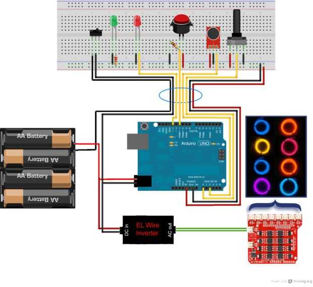 Lo positivo del broche de presión del conector de batería está conectado permanentemente el Arduino y el inversor.