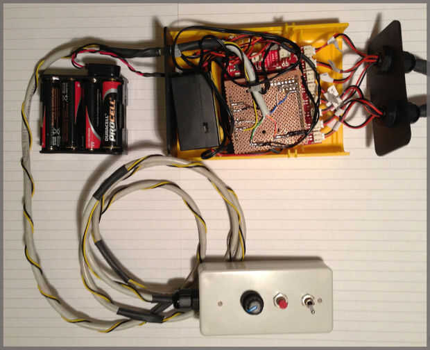 El paquete entero de cerebro y batería puede ir en una mochila, que le da control completo usando el mando a distancia.