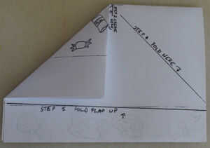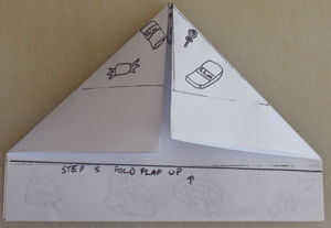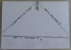 Pasos tres y cuatro necesitan doblar las dos esquinas en los lineamientos proporcionados, serán desigual pero eso no importa (hizo así a propósito).
