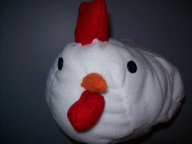 Coser en su elección de material de waddle, gobble y pico y mecharla. ¡ Hurra! Tienes un buen pollo relleno con un gran agujero en la parte inferior.