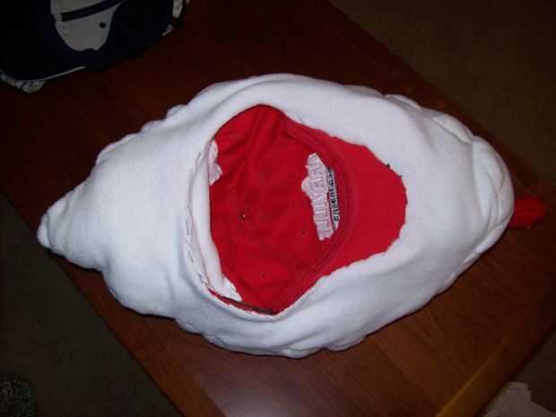 Tome el sombrero y fíjelo en el interior del agujero central. Coser un parche para cubrir la parte posterior del sombrero e ir a divertirse con un pseudo aves en su