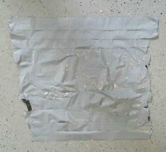 Existen varios métodos para hacer la tela de cinta del conducto. El método que estoy usando implica pegar tiras de cinta adhesiva encima de la otra para crear un lado medio pegajosa, color medio, luego que cubre el lado adhesivo en hebras de cinta de conducto individual perpendiculares a la hoja original. Alternativamente, usted podría también tejer hilos individuales juntos como cadena, o espolvorear talco sobre el lado pegajoso para neutralizar el adhesivo.