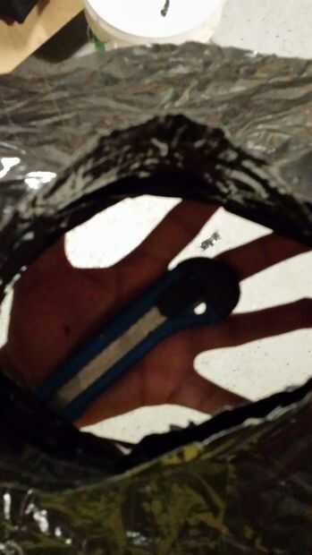 Una vez que está seguro de que el sombrero es perfecto y le cabrá, corte un agujero en la parte inferior con un cuchillo u otro utensilio afilado, teniendo cuidado de no cortar a través de la parte superior o el resto del borde. Ponga cinta sobre las partes cortadas.