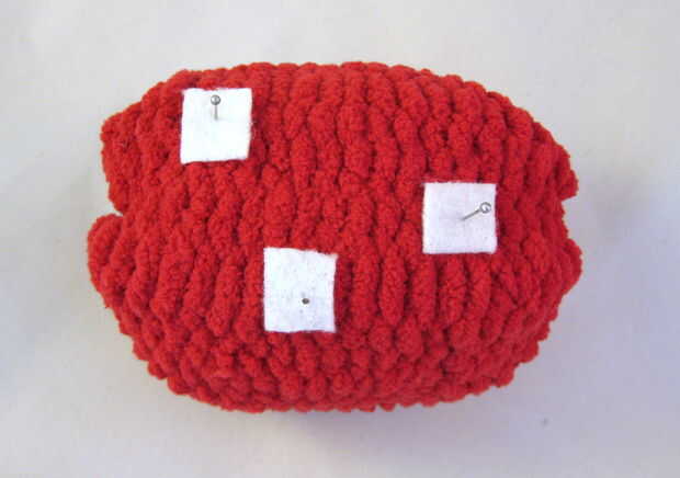 Las 24 piezas de AI son los lugares setas – hice 8 puntos para cada uno de los 3 hongos. Es difícil adaptar lugares seta de mooshroom para un objeto redondo 3D, pero puedes mirar las fotos aquí para ver lo que hice. (Usted puede también mirar los cuadros mooshroom vinculados en el paso 7 para obtener otras ideas para acercarse a este.)