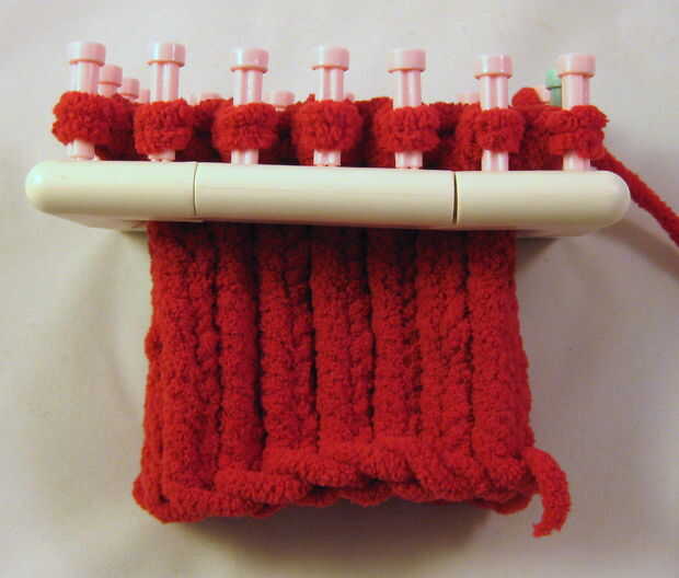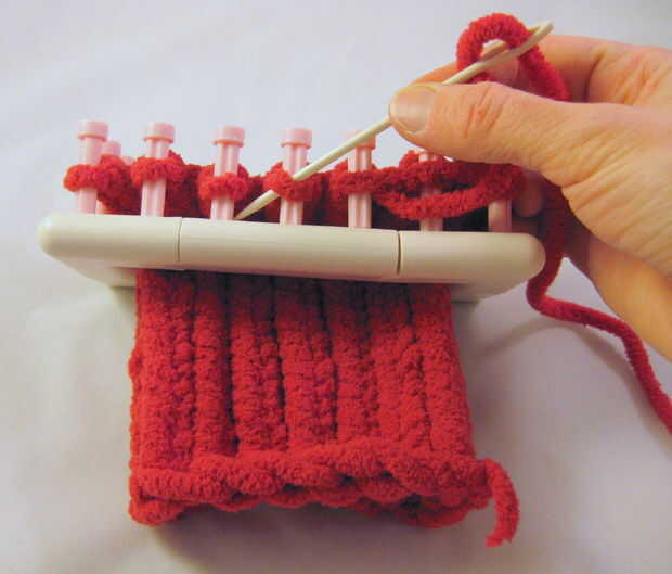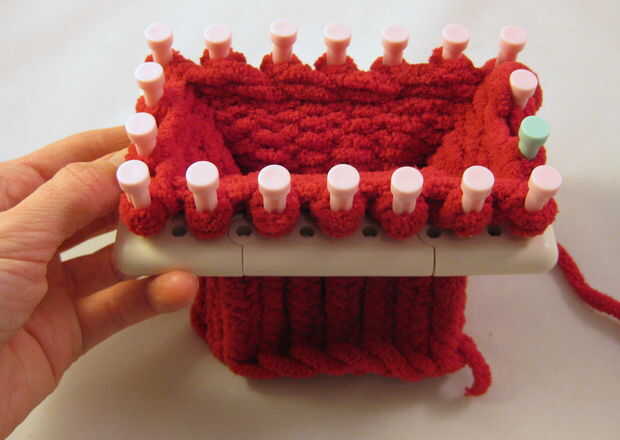 Utilizar la técnica de puntada uno sobre dos (como se describe en el paso 2) para tejer 20 rondas en el telar.