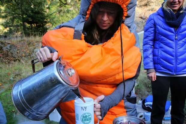 Este fin de semana fui en viaje de balsa y el sonámbulo se llevó conmigo. La primera mañana en el río fue enérgica y es maravilloso levantarse de la cama sin dejar la calidez de mi saco de dormir detrás. Simplemente vestíos de mis brazos y piernas a través de los agujeros, velcro las correas, cordones para mis zapatos y caminó hasta la cocina de campamento. Disfruté mi café y desayuno en esta bolsa y me alojé comfortablemente caliente toda la mañana.