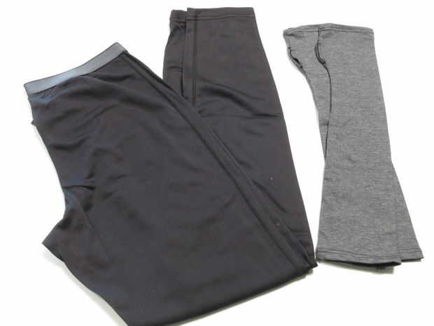 Para el fondo de la capa base, ordené un par en línea que estaban a la venta. Yo quería que ser sintético por lo que se secan rápidamente. También puede usar calcetas de algodón, o cualquier tipo de pantalones. Estará cortando estas aparte, para no usar tus jeans favoritos o vintage ropa interior larga. Usted también podría optar por pantalones que tenían pies incorporados, estilo pijama footy.