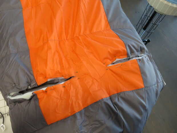 Corte de los agujeros del brazo y ambos de los agujeros de la pierna. Comparar los orificios para los calentadores de brazos y los pantalones para asegurarse de que les han cortado con el tamaño correcto. Hacer los ajustes de corte si es necesario. Si los orificios están ligeramente más grandes que usted quería que no debería ser un problema. Podrás ocultar errores la mayoría mientras que coser los brazos y las piernas.