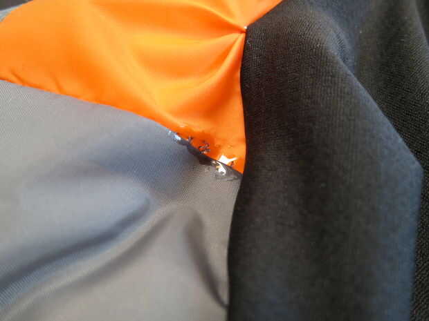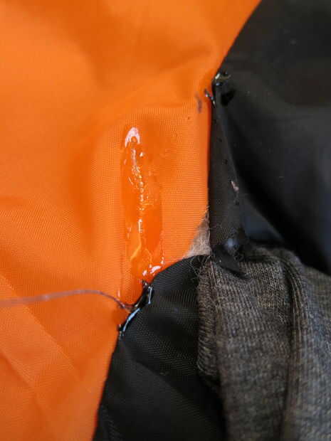 Un par costuras del saco de dormir (donde la tela naranja y gris se suturan) comenzaron a desentrañar. Retocado estos con un poco de pegamento solo para asegurarse que no desentrañar más.