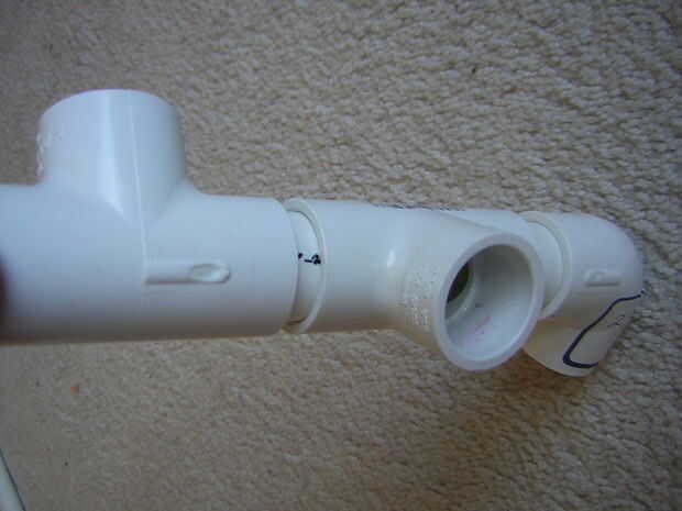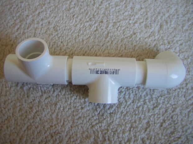 Inserte el pedazo pequeño de tubo en el codo y el otro extremo de la materia en un cruce de tee. Entonces la segunda pieza de la pipa y se usa para fijar al último cruce de tee.