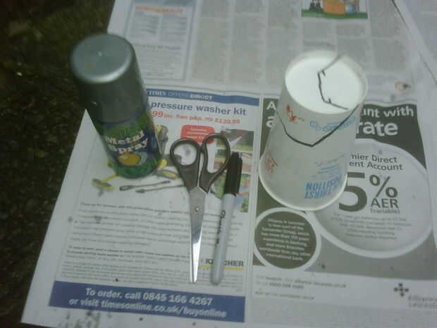 Aerosol-pintura (yo escogí la pintura metálica de plata) o si ya tienes una taza de color esta costumbre sea necesario