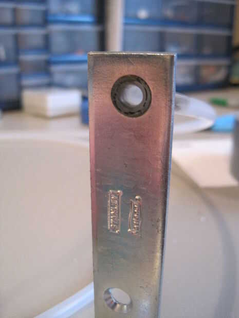 Mi tercer paso fue unirse a los dos. Me di cuenta que el diámetro del tubo era más pequeño que el agujero en el soporte en L. Eso es bueno aunque, me permite tomar la tubería muy fácilmente. Sin embargo, ¿qué me voy a hacer para colocarlo en su lugar durante la operación pero todavía desmontaje? Terminé el tubo uniformemente usando un encendedor y luego pegando la punta de un lápiz mecánico al reborde del tubo de la calefacción. Como se puede ver, terminó siendo un perfecto encaje en el agujero avellanado en el soporte en L y me permite deslizar el tubo hacia fuera sin problemas.