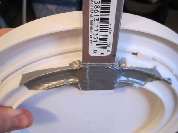 En tercer lugar, aplicar cinta adhesiva para hacer el soporte el anillo estacionario tal que el soporte es unas pocas pulgadas fuera de la rotación base. Si está demasiado cerca, el filamento no tiene un buen camino a seguir.,
