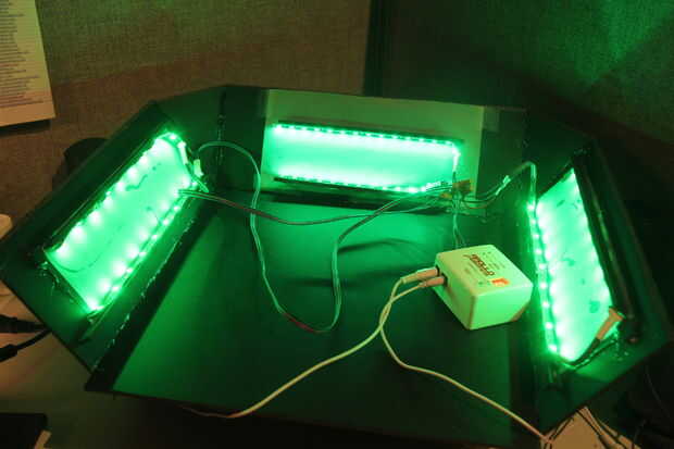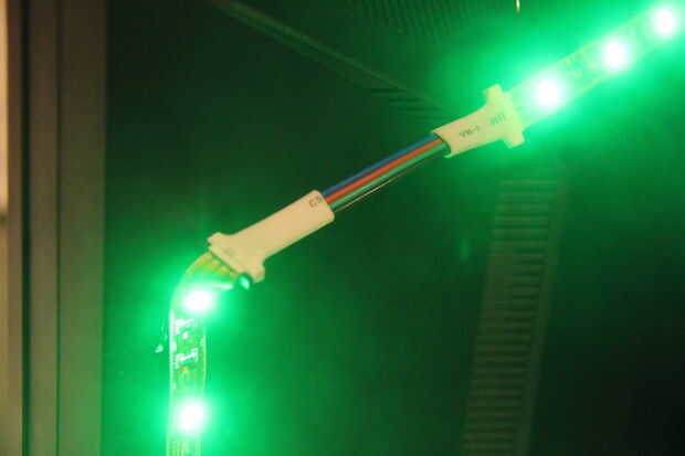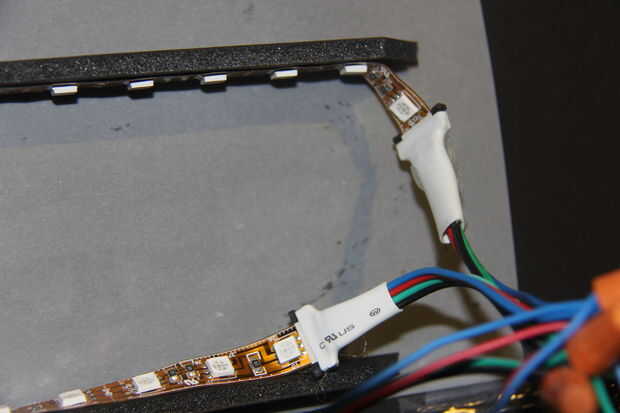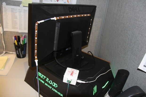 Repita este proceso en la parte posterior del monitor, montaje de las luces de la tira en la parte trasera mirando hacia la pared detrás de su escritorio, ejecute estas usando los conectores EZ el mismo Apolo Jammer, o una segunda emisión de Apolo.