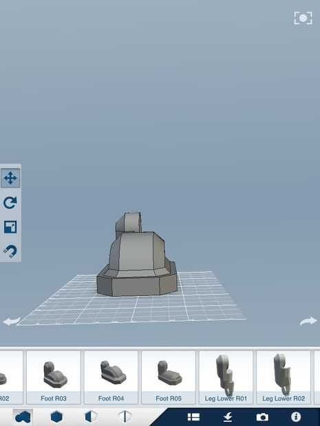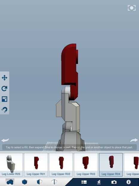 Ir a: categoría robots---> piernas derecha pie 1-introducir número R04. No cambie su tamaño! 2 - agregar la pierna inferior número R04 pero pega a los pies como en la imagen. 3-palo de la pierna superior R04 a la pierna inferior como en la imagen. Asegúrese de que están todos en la posición correcta