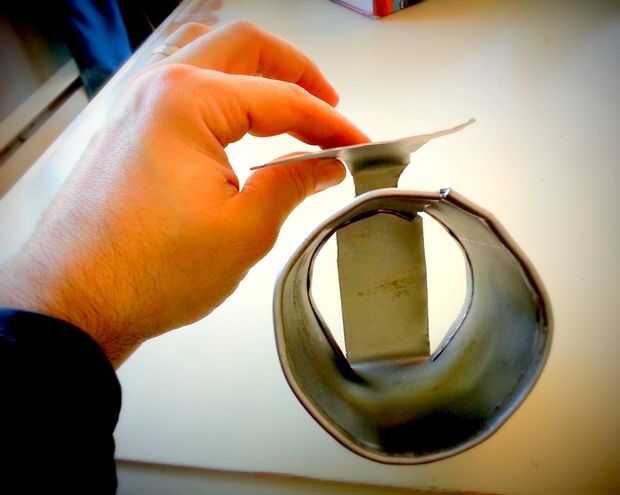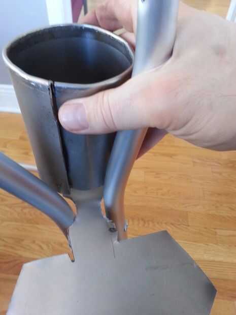 Me gusta mi diseño, porque gran parte del peso está sentado con seguridad en un pedazo de la muleta (la entrepierna). Esto elimina cualquier balanceo o miedo que vendrá sacarse. No confío mi plantilla de papel para la colocación de este corte, así que doblé primero y ver dónde cortar las ranuras para las "patas". Por favor ver las fotos. Una vez que se recortan las muescas, pliegan cuidadosamente la "solapa posterior" en ángulo recto.
