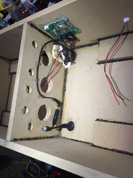 Montado en el tablero de bluetooth para el techo de la caja con la esperanza de optimizar la recepción y la distancia, puesto que ya tiene que penetrar 1/2" MDF.