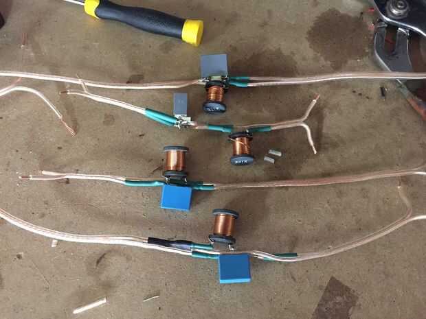 Después de usar las calculadoras de crossover muchos disponibles para la red de 2 º orden Linkwitz-Riley, encontré los valores de los capacitores e inductores para mi drivers de impedancia dado. Calidad de componente de cruce es realmente muy importante y uno debe usar condensadores electrolíticos no polarizados por lo menos con baja ESR (o mejor aún, gorras de la película, que se utilizan en este diseño) y preferiblemente de aire o inductores de núcleo de hierro. Los inductores son el componente más caro y en parte porque y los amores de alta fidelidad de la comunidad su gran calibre aire cobre núcleo inductores. Los inductores de núcleo de aire de alta fidelidad son grandes para manejo de alta potencia y un rendimiento estable en comparación con bobinas de núcleo de ferrita cuando se utilizan en altavoces, pero en nuestra aplicación de energía más bajo que podemos llegar lejos con el uso de inductores de núcleo de ferrita bien spec ed como tienen suficientemente baja DCR y una saturación actual que no peguemos en nuestra aplicación.