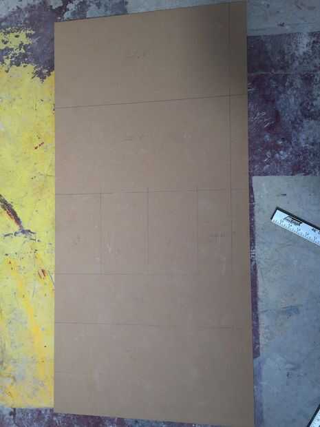 Usé la calculadora altavoz en la sección "Teoría" para ayudar a afinar el tamaño total e incluso hace recomendaciones de tamaño para todos los paneles de corte! Corté un panel de tapa final repuesto para utilizar en el centro como un medio de apoyo para rigidez total.