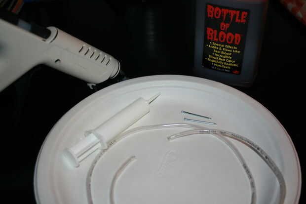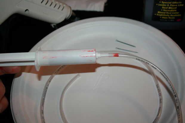 - Ahora repite la misma técnica de pegamento en el extremo de la jeringa