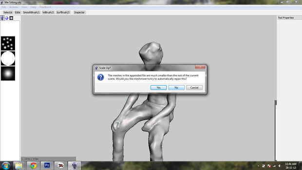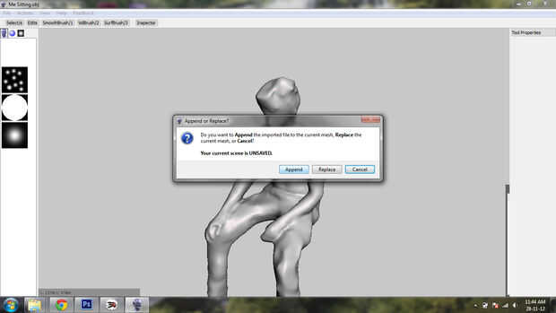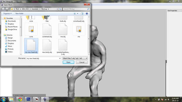 Una vez abierto el archivo stl de la cabeza, la importación cuando el cuadro de diálogo preguntándole si desea abrir un nuevo modelo a añadir a la existente elige "anexar". Si pregunte si desea cambiar el tamaño el modelo entrante Seleccione no.