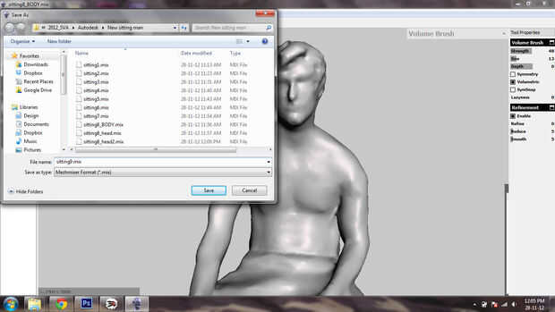 Una vez que ha limpiado la cabeza captura luego exportarla como un stl. Luego vuelva a abrir su captura 'limpio' de cuerpo entero de malla.