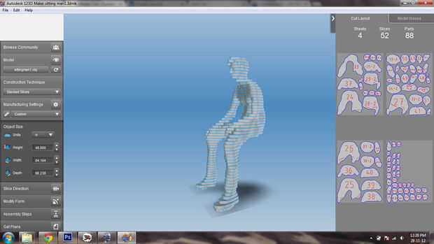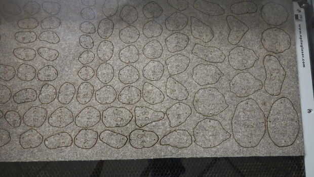 Averiguar el tamaño de su cama de corte de láser. Si tienes acceso a un uso de cortadora láser las dimensiones si desea que se corte láser a través de un servicio de corte laser como Ponoko tienen 0.197 pulgadas de espesor disponible en 31 "x 15" ($68,59). Tenga en cuenta que pequeños espesores resultará en más archivos de la corte para alcanzar el modelo final de mismo tamaño. Desde que tengo acceso a un cortador del laser cama 24 "x 18" trajo mi fieltro de McMaster Carr una hoja de 1/4" gris suave fieltro 72" x 12" me costo $29,93 y pude cortar con un cuchillo en 3 hojas de 24" x 12" para encajar en el cortador del Laser.