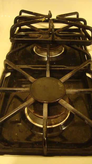 Aquí puedes ver la grasa y toda la basura negro en la parte superior de la estufa. No me decepcioné porque sabía que iba a hacer un instructivo para el concurso y el desorden me ofreció un buen tema.